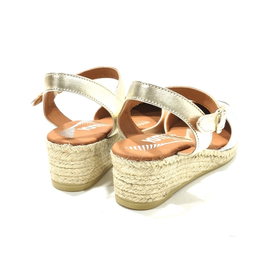 Alpargata puntera cerrada, fabricada en piel, con cuña de 3 cm de yute natural