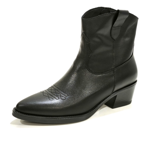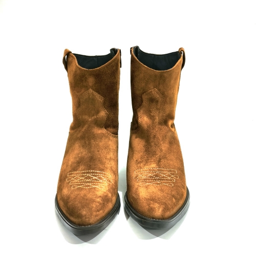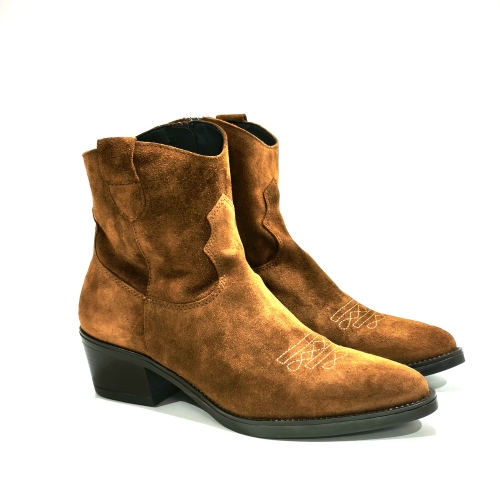 Botín cowboy con cremallera lateral, fabricado en serraje, con tacón cubano de 5 cm
