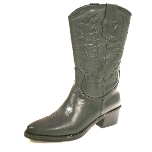Bota cowboy, fabricada en piel, con tacón cubano de 5 cm y suela de goma