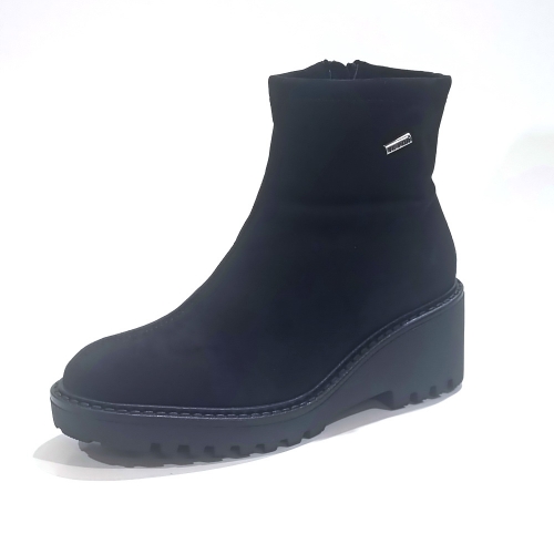 Botín con cremallera lateral, fabricado en ante licra elástica, con cuña de goma de 5 cm