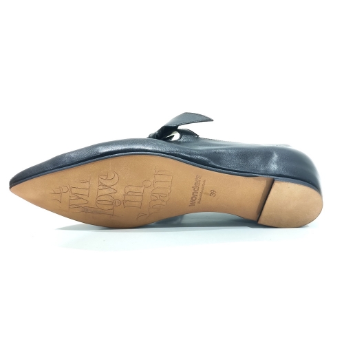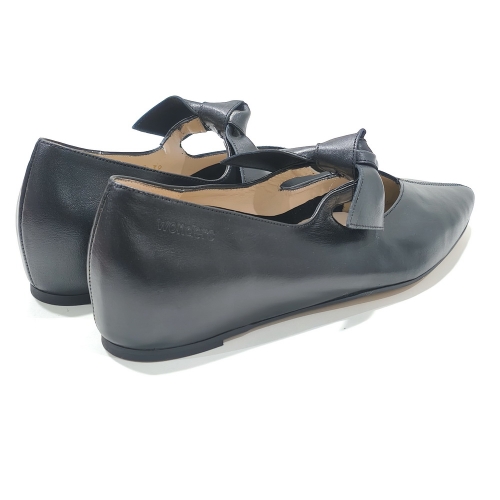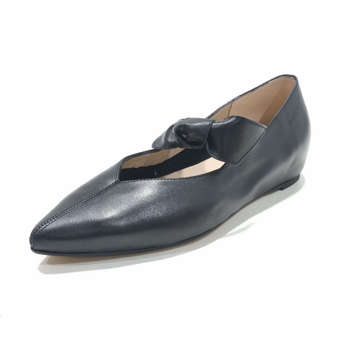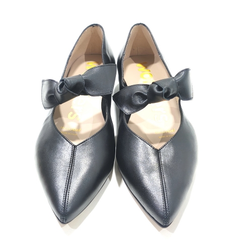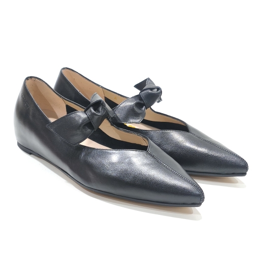 Zapato plano con lazo en el empeine, fabricado en piel, con suela de goma