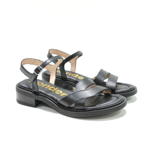 Sandalia con tira en el empeine, fabricada en piel, con suela de goma y tacón de 2 cm