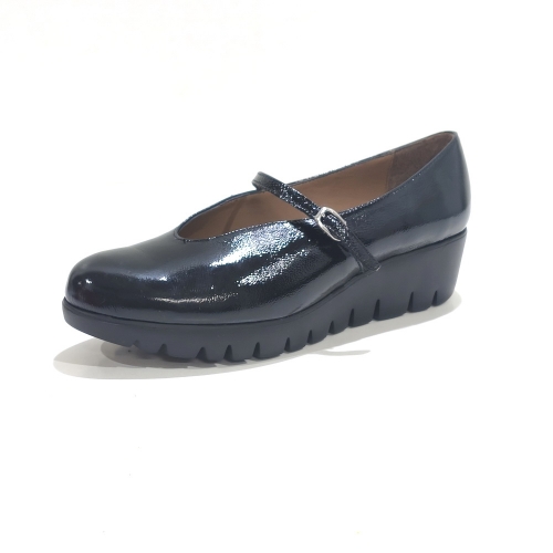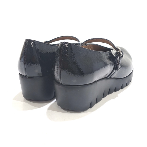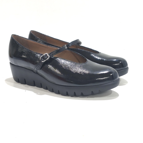 Zapato Merceditas, fabricado en charol, con cuña de 5 cm y plataforma de 2 cm de goma