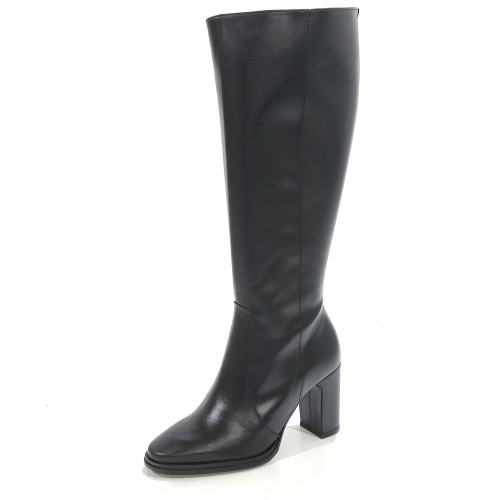 Bota de caña alta con cremallera lateral, fabricada en piel, con tacón de 6 cm y suela de goma